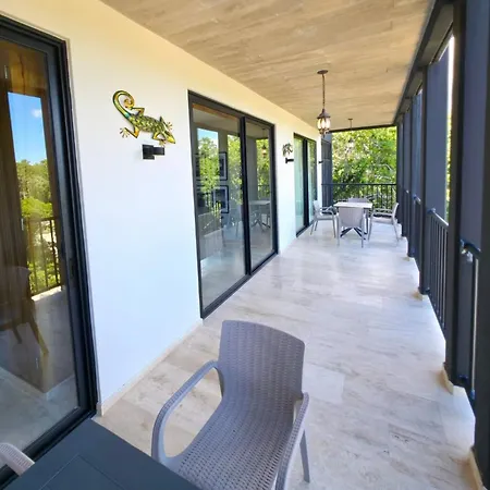 Offering a plunge pool, Stylish 3Br For 6 - Pools, Gym, Padel And Parking Villa Tulum is located an 18-minute walk from Plaza Andador Tulum.